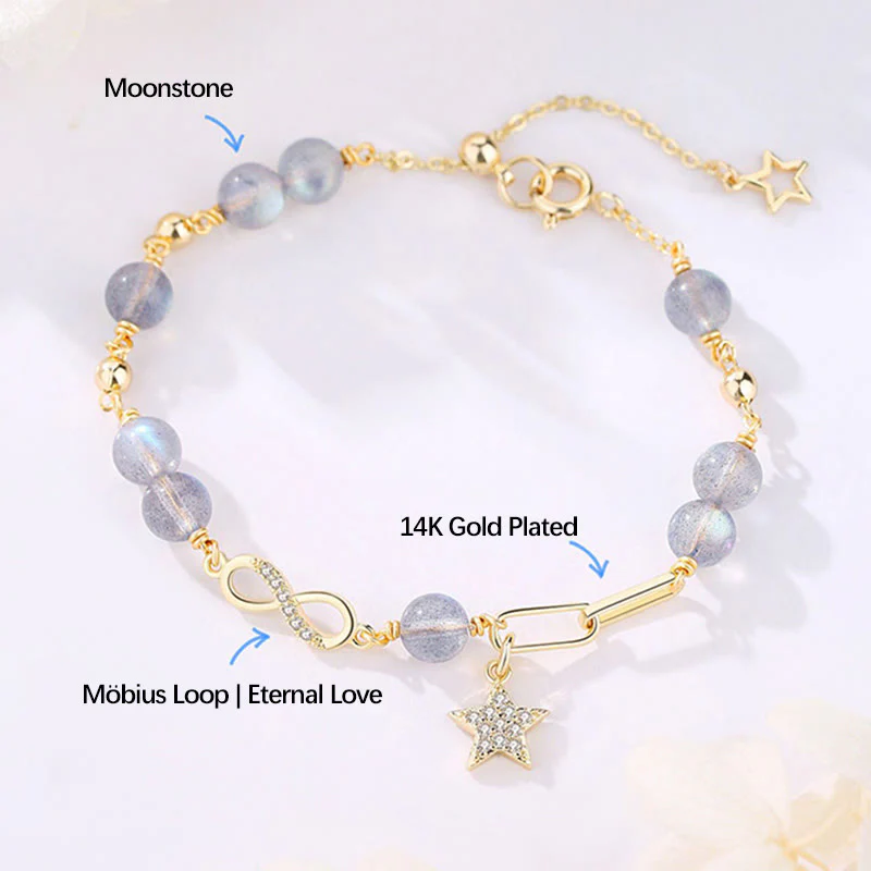 14K Gold Plated Natural Strawberry Quartz Moonstone Möbius Loop Eternal Love Star Positive Bracelet