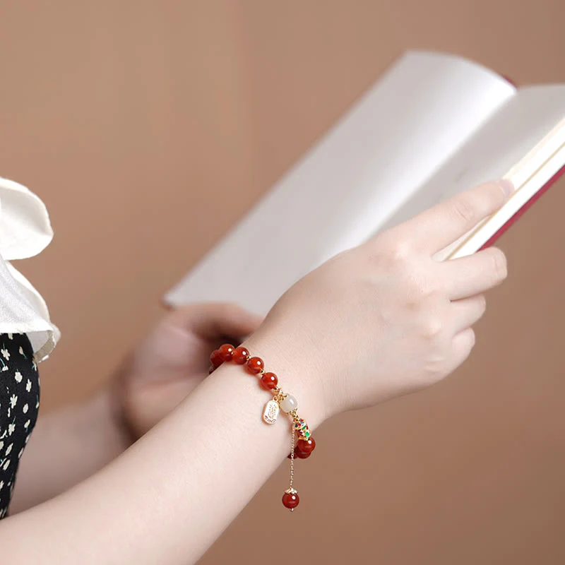 Natural Red Agate Hetian Jade Fu Character Confidence Charm Bracelet