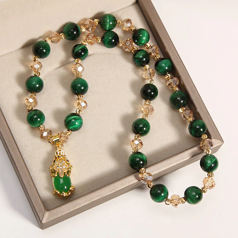 Core Materials: Red tiger’s eye, green tiger’s eye (main beads), auspicious charms (including Pi Xiu, fox, money bag)