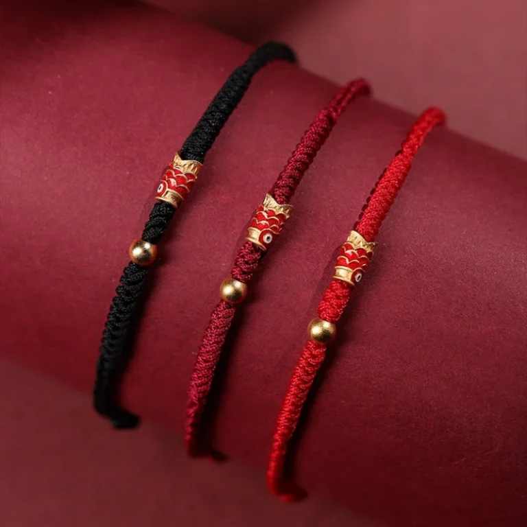 925 Sterling Silver Handcrafted Koi Fish Wealth-Attracting Braided Cord Bracelet