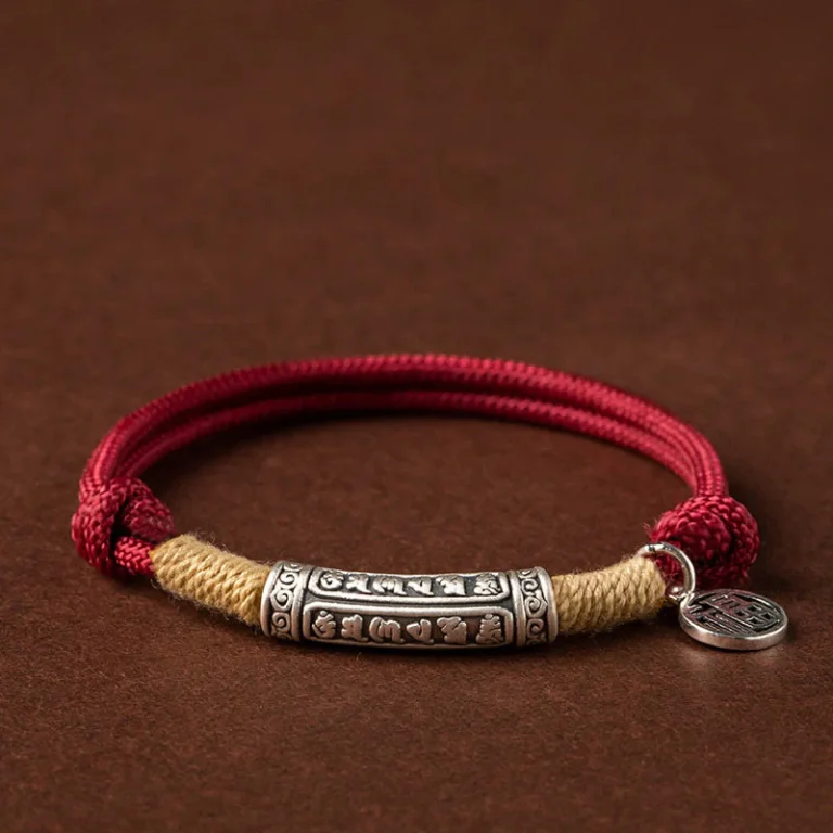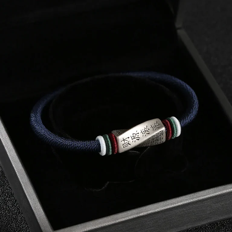 999 Sterling Silver Tibet Handmade Om Mani Padme Hum Fu Character TopRank Character Luck Braided Bracelet
