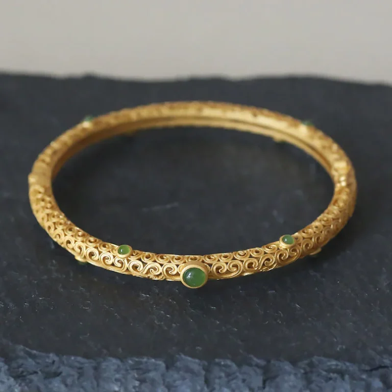 Cyan Jade Copper Auspicious Clouds Calm Healing Bracelet Bangle
